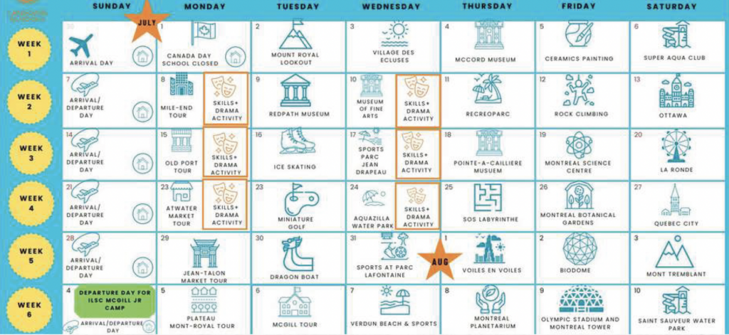Els estudiants combinaran activitats diàries amb classes d’anglès de dilluns a divendres i una activitat de dia complet els dissabtes. Les tardes i els diumenges els passaran amb la seva família d’acollida.